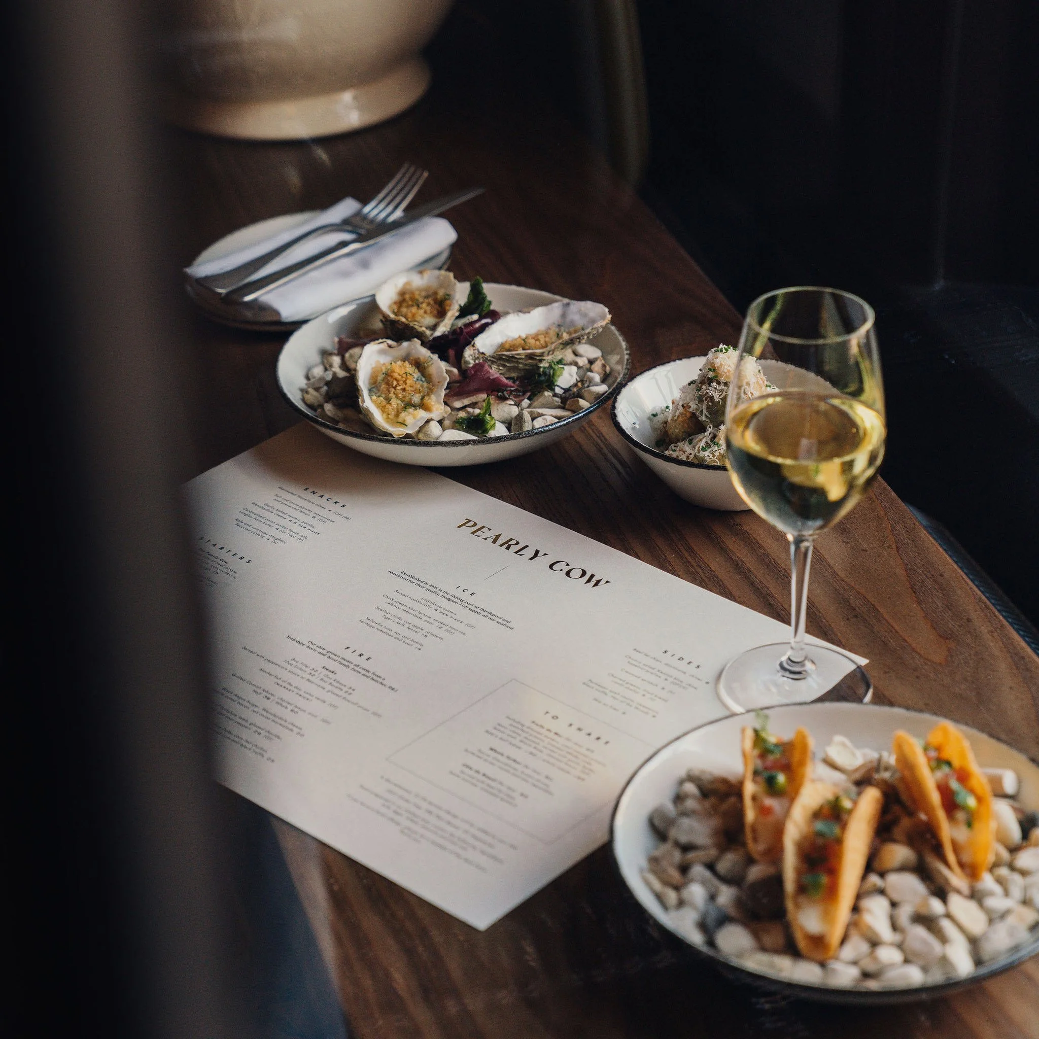 The owners of GuestHouse launched the restaurant group Pearly Cow in March 2023, starting with the York location, closely followed by Margate in July 2023. Pearly Cow is a restaurant that cooks over charcoal-fire for flavour with the best cuts of British meat and seafood. Using the brand guidelines and assets produced by branding agency &SMITH, I led the roll out of all design assets and production across both restaurants.